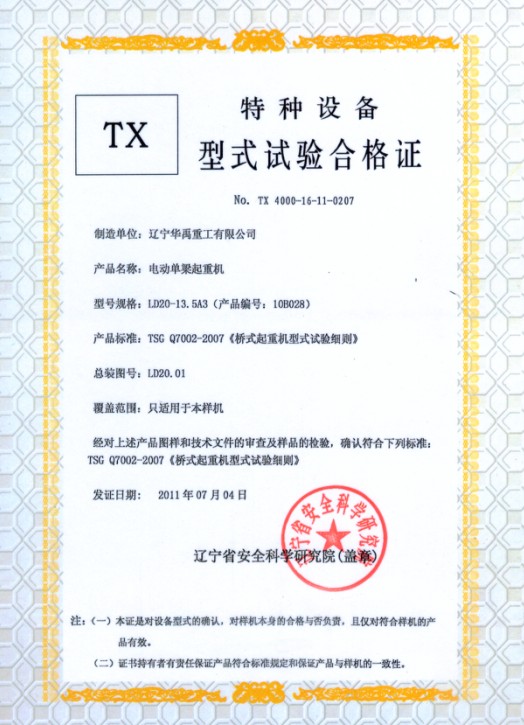 型式试验合格证007